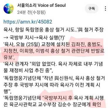 속보] 육사, 항일 독립운동영웅 흉상 철거시도.jpg       심지어 국방부지시 라는것 까지 확인했다하네요   그래놓고 논란이 이니까 이 찢어죽일새끼들 왈       그러니까 결국 이분들을  국방부 방침에 따라 육사는 인정할수 없다 는것 아닙니까?   나라에 친일매국노 흉상을 도...